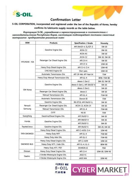 | Допуски и спецификации для легковых авто | ACEA C5 |