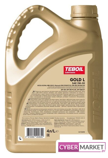 | Допуски и спецификации для легковых авто | VW 502 00, VW 505 00, ACEA A3/B4, MB 229.3, Renault RN 0700, Renault RN 0710 |