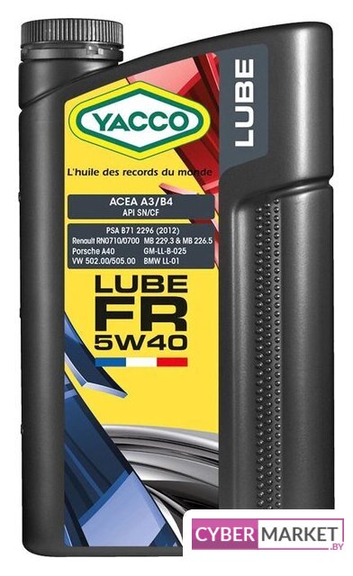 | Спецификации и допуски | LUBE FR 5W-40 официально одобрено:, - PSA B71 2296 (2012), - Renault RN0710, - Renault RN0700, LUBE FR 5W-40 соответствует требованиям спецификаций:, - ACEA A3/B4, - API SN/CF, - BMW Longlife-01, - GM-LL-B025, - MB 229.3, - MB 226.5, - PORSCHE A40, - VW 502.00 / VW 505.00 |