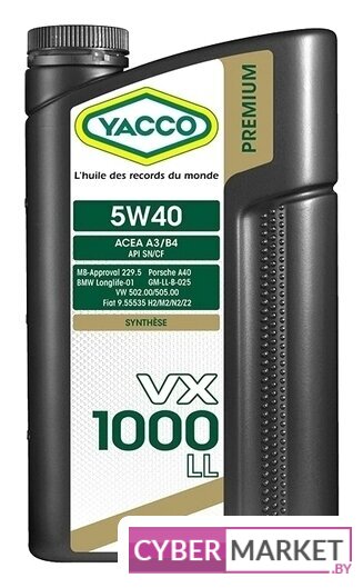 | Спецификации и допуски | VX 1000 LL 5W-40 официально одобрено:- API SN- BMW Longlife-01- MB-Approval 229.5- Porsche A40- VW 502.00/505.0VX 1000 LL 5W-40 соответствует требованиям спецификаций:- ACEA A3/B4- API CF- Fiat 95535 H2/M2/N2/Z2- GM-LL-B-025- PSA B71 2296- Renault RN0710- Renault RN0700 |