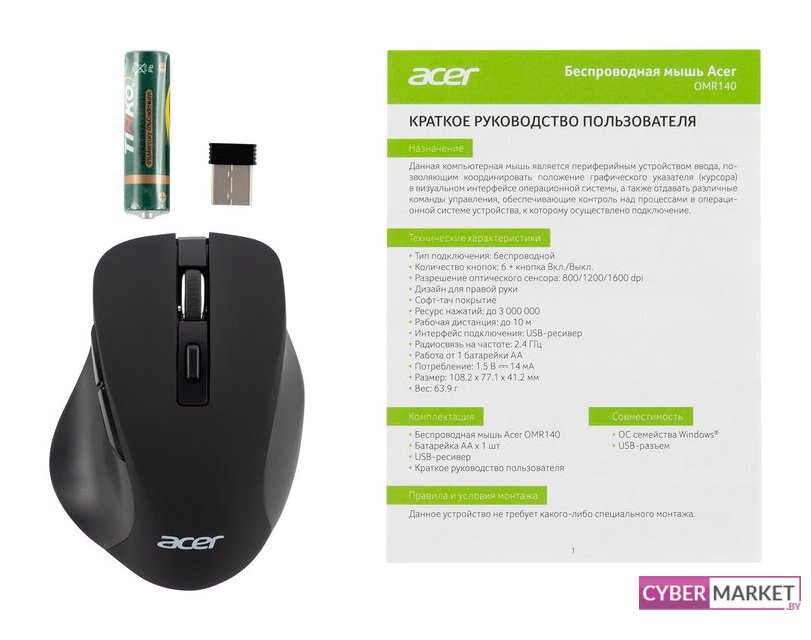 | Комплектация | - одна батарейка стандарта AA- USB-приемник |
