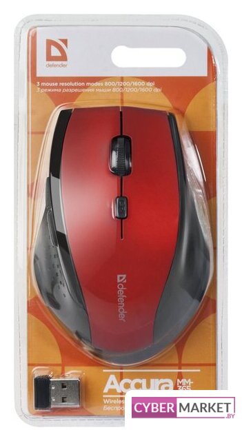 полноразмерная мышь для ПК, беспроводная радио, сенсор оптический 1600 dpi, 4 кнопки, колесо с нажатием, цвет красный/черный