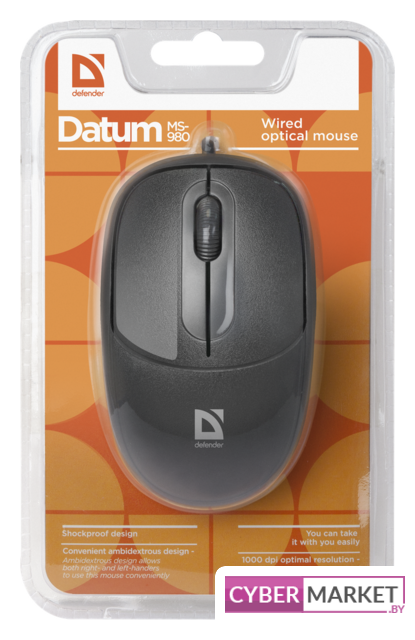 полноразмерная мышь для ПК, проводная, сенсор оптический 1000 dpi, 3 кнопки, колесо с нажатием, цвет черный
