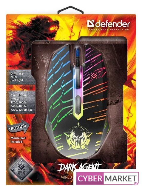 полноразмерная игровая мышь для ПК, проводная, USB, сенсор оптический 3200 dpi, 7 кнопок, колесо с нажатием, цвет черный/рисунок