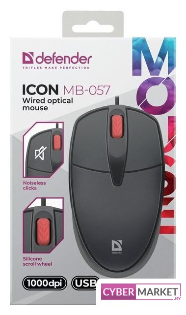 полноразмерная мышь для ПК, проводная, USB, сенсор оптический 1000 dpi, 2 кнопки, колесо с нажатием, цвет черный