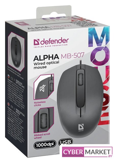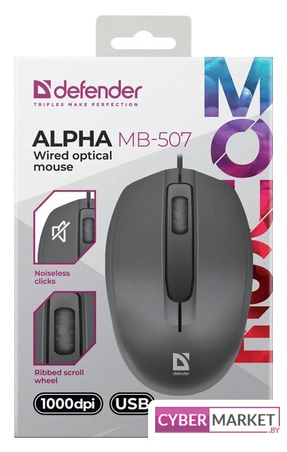 полноразмерная мышь для ПК, проводная USB, сенсор оптический 1000 dpi, 3 кнопки, колесо с нажатием, цвет черный