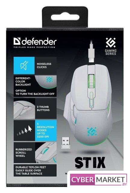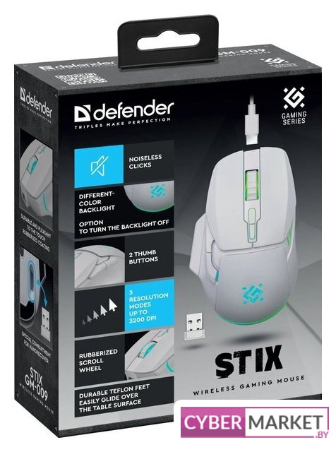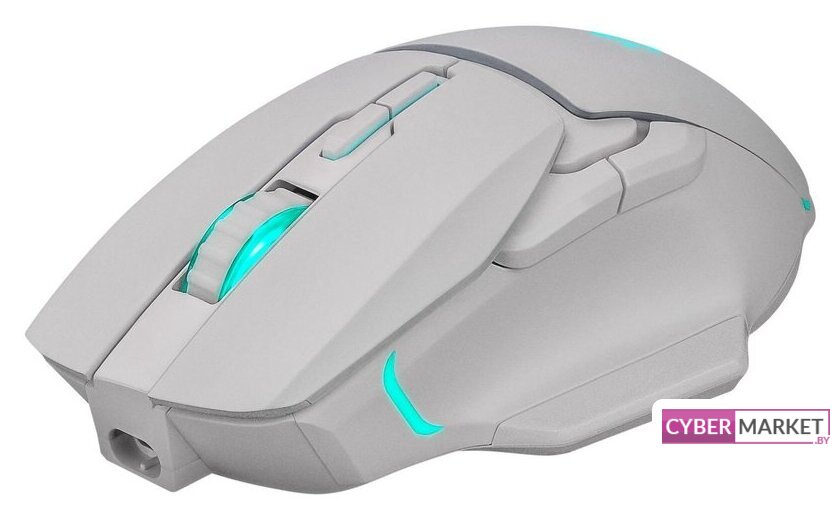 полноразмерная игровая мышь, проводная USB Type-A/беспроводная Bluetooth/беспроводная радио, сенсор оптический 16000 dpi, 12 кнопок, колесо с нажатием, цвет белый/серый