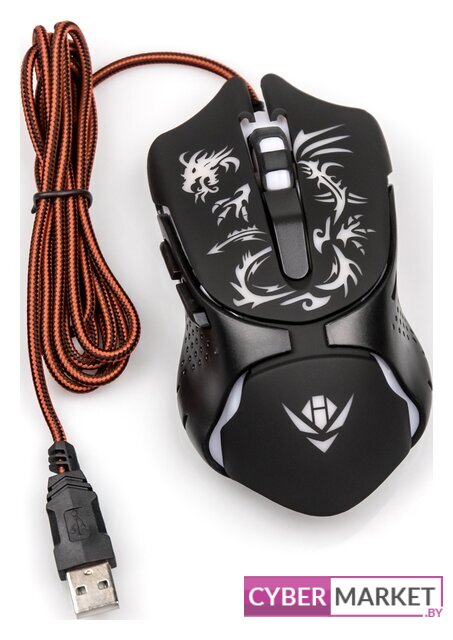полноразмерная игровая мышь для ПК, проводная USB, сенсор оптический 7200 dpi, 6 кнопок, колесо с нажатием, цвет черный/цветной принт
