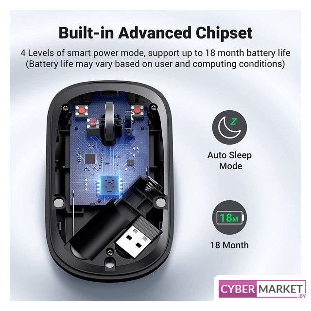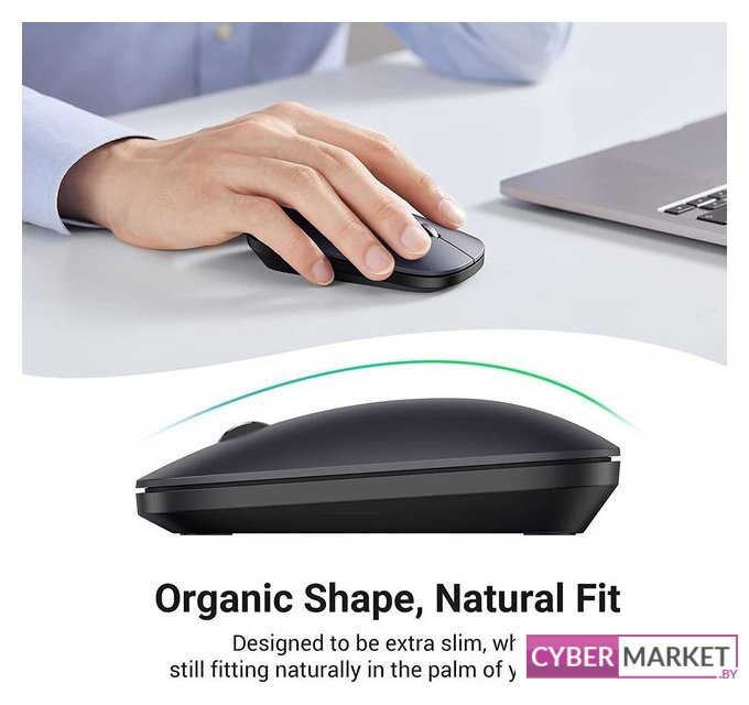 полноразмерная мышь для ПК, беспроводная радио/Bluetooth, сенсор оптический 1800 dpi, 4 кнопки, колесо с нажатием, цвет черный