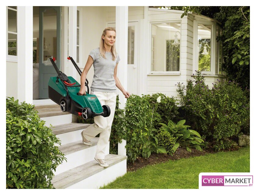 колёсная газонокосилка, аккумуляторный двигатель, ширина скашивания: 33 см, мягкий травосборник 35 л, корпус: пластик