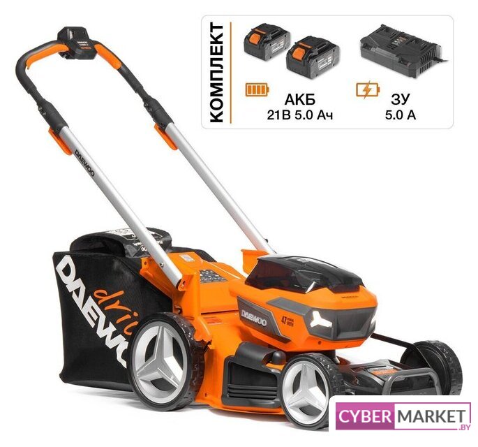 | Комплектация | - Газонокосилка - 1 шт., - Аккумулятор 5,0 Ач - 2 шт., - Зарядное устройство - 1 шт., - Рукоятка - 1 шт., - Травосборник - 1 шт., - Крепежные элементы - 1 комплект, - Руководство по эксплуатации, - Гарантийный талон, - Коробка |