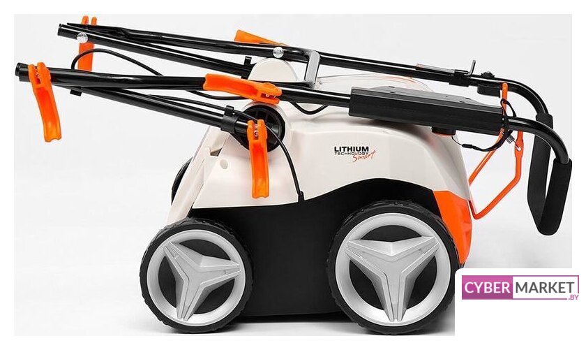 скарификатор-аэратор, аккумуляторный двигатель, работа от аккумулятора, ширина скашивания: 35 см, корпус: пластик