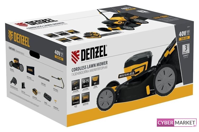 | Комплектация | Газонокосилка в сборе с ножом и колесами - 1 штАккумуляторная батарея Denzel Power System - 2 штЗарядное устройство - 1 штТравосборник - 1 штВерхняя часть рукоятки - 2 штФиксаторы рукоятки - 2 штБолт для фиксатора рукоятки - 2 штШайба для фиксатора рукоятки - 2 штКлипса для провода - 2 штДефлектор бокового выброса - 1 штЗаглушка для мульчирования - 1 штРуководство по эксплуатации с гарантийным талоном - 1 шт |