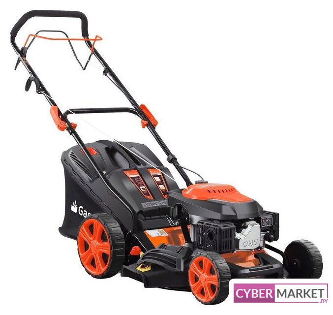 роторная газонокосилка, бензиновый двигатель 3000 Вт (4 л.с.), ширина скашивания: 46 см, мягкий травосборник 50 л, корпус: сталь