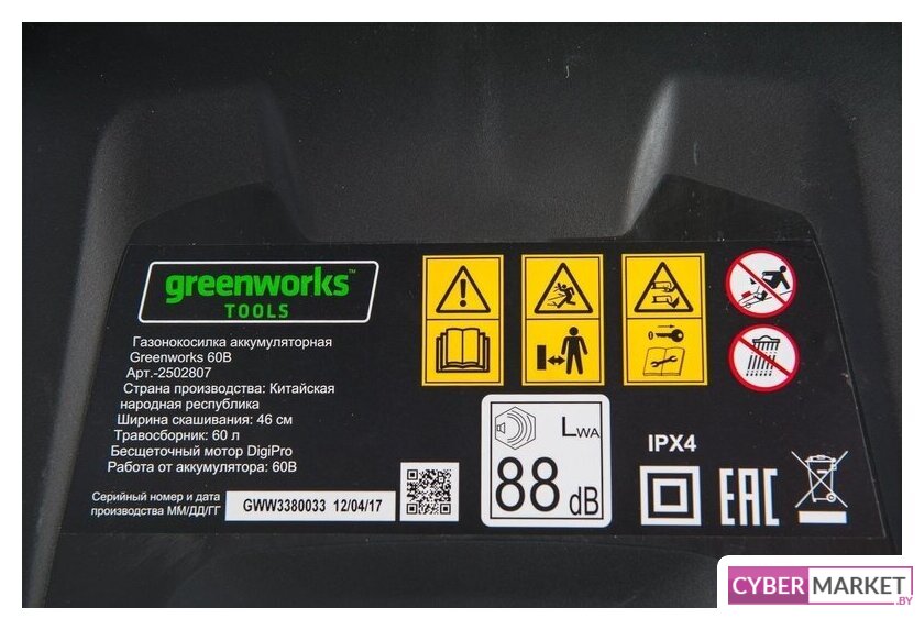 | Комплектация | - Аккумуляторная газонокосилка - Заглушка для мульчирования- Вставка для бокового выброса травы- Мешок-травосборник- Руководство по эксплуатации- Гарантийный талон |