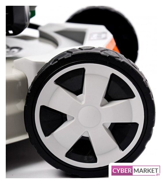 роторная газонокосилка, аккумуляторный двигатель, работа от аккумулятора, ширина скашивания: 34 см, мягкий травосборник 35 л, корпус: пластик