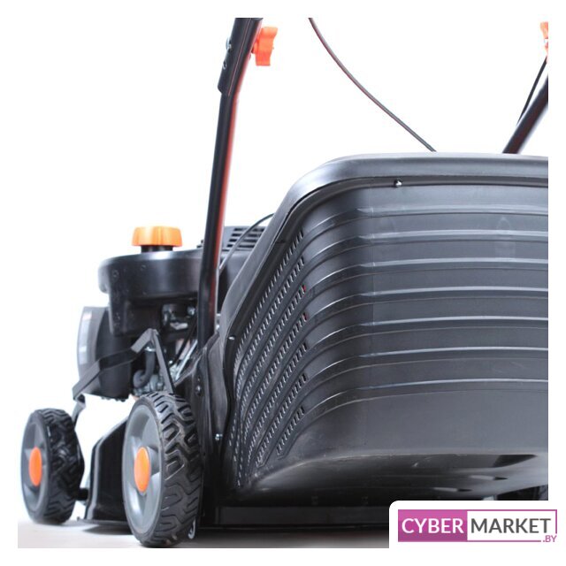 колёсная газонокосилка, бензиновый двигатель 1500 Вт (2 л.с.), ширина скашивания: 42 см, мягкий травосборник 40 л, корпус: сталь