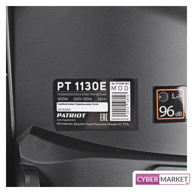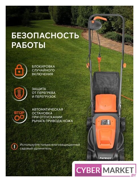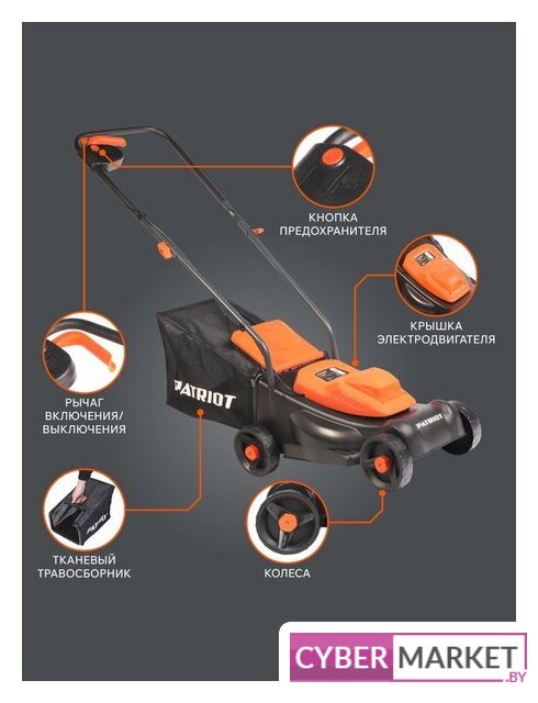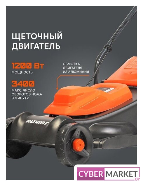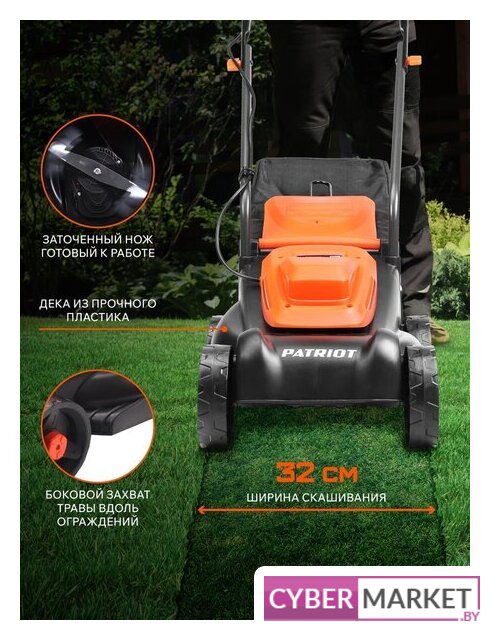 роторная газонокосилка, электрический двигатель, 1200 Вт, 1.6 л.с., ширина скашивания: 32 см, жесткий травосборник 30 л