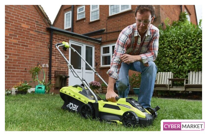 роторная газонокосилка, электрический двигатель, 1600 Вт, 2.1 л.с., ширина скашивания: 38 см, мягкий травосборник 50 л