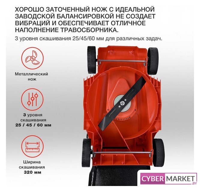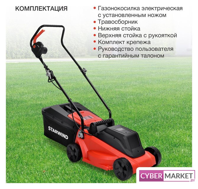 | Комплектация | - газонокосилка, - травосборник,- рукоятка, комплект крепежа |
