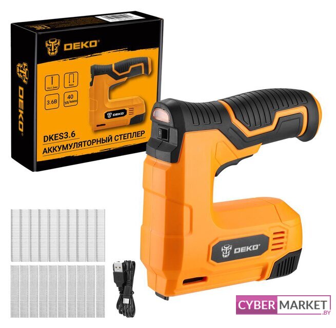 | Комплектация | - Степлер - 1 шт.- U-образные скобы 8мм - 1000 шт.- T-образные гвозди 10х1.2мм - 500 шт.- USB-кабель для зарядки - 1 шт.- Руководство по эксплуатации - 1 шт. |