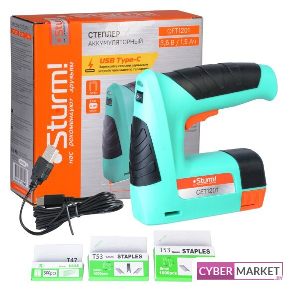| Комплектация | Аккумуляторный степлер, скобы 6 мм (1000 шт), скобы 8 мм (1000 шт), гвозди 10 мм (500 шт), кабель USB Type-С, инструкция по эксплуатации, инструкция по безопасности |