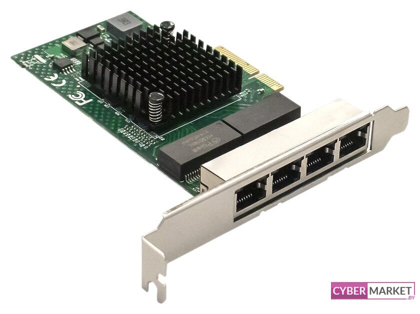 PCI Express 2.1 x4, 1 Гбит/с, green, BootROM, WoL, 4xRJ45