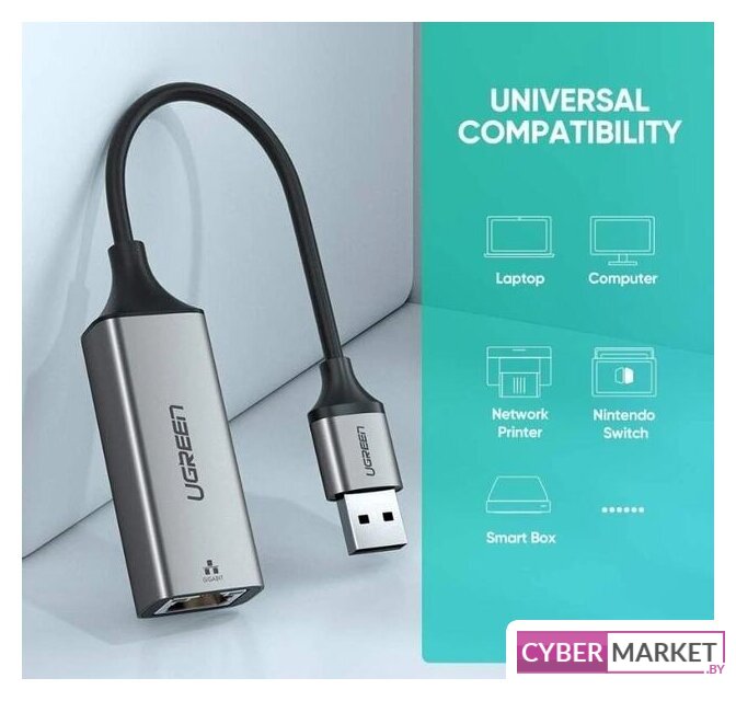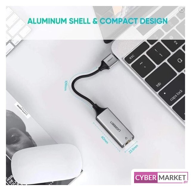 адаптер USB 2.0 Type-C/RJ45, серебристый, длина 0.1 м