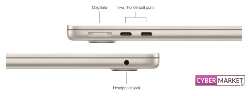 13.6" 2560 x 1664, IPS, 60 Гц, Apple M3, 16 ГБ, SSD 256 ГБ, видеокарта встроенная, Mac OS, цвет крышки золотистый, аккумулятор 52.6 Вт·ч