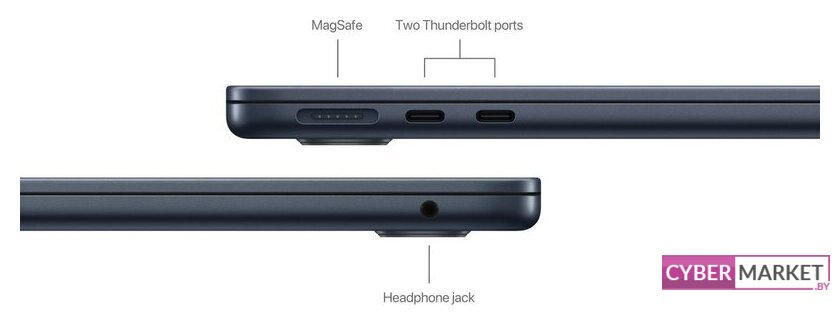 13.6" 2560 x 1664, IPS, 60 Гц, Apple M2, 16 ГБ, SSD 512 ГБ, видеокарта встроенная, Mac OS, цвет крышки темно-синий, аккумулятор 52.6 Вт·ч
