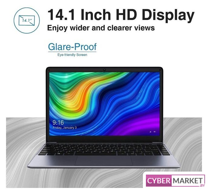 14.1" 1920 x 1080, IPS, 60 Гц, Intel Processor N100, 8 ГБ LPDDR5, SSD 256 ГБ, видеокарта встроенная, Windows 11 Home, цвет крышки серый, аккумулятор 38 Вт·ч