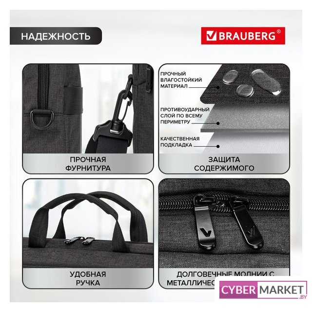 сумка для ноутбука 15.6", полиэстер, цвет черный