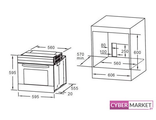 электрический с конвекцией, объем 68 л, 6 режимов, очистка ручная, энергопотребление A+