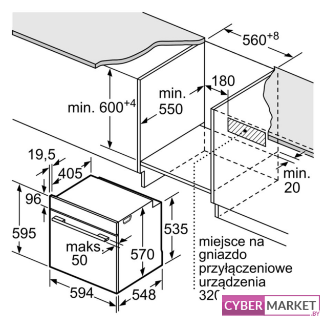 электрический с конвекцией, объем 76 л, 9 режимов, очистка паровая, 3 стекла в дверце, направляющие проволочные + телескопические (2 уровня)