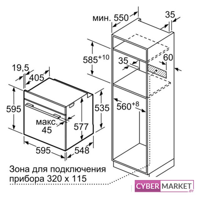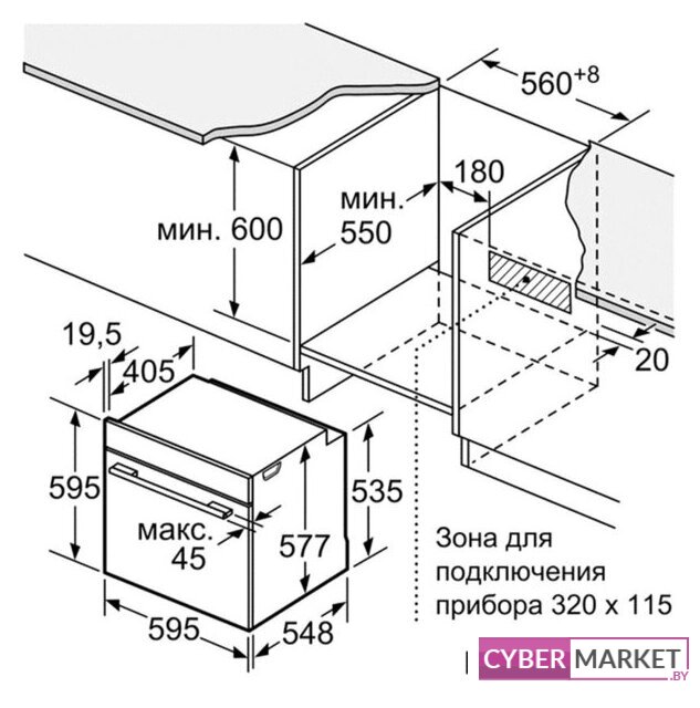 электрический с конвекцией, объем 71 л, 13 режимов, очистка каталитическая + паровая, направляющие проволочные