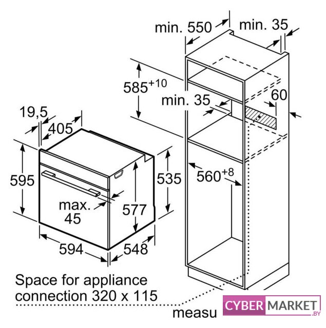 Размеры ниши для встраивания |