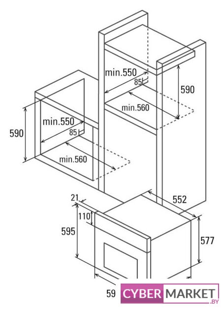 электрический с конвекцией, объем 76 л, 10 режимов, очистка ручная, 3 стекла в дверце, направляющие проволочные + телескопические (2 уровня)