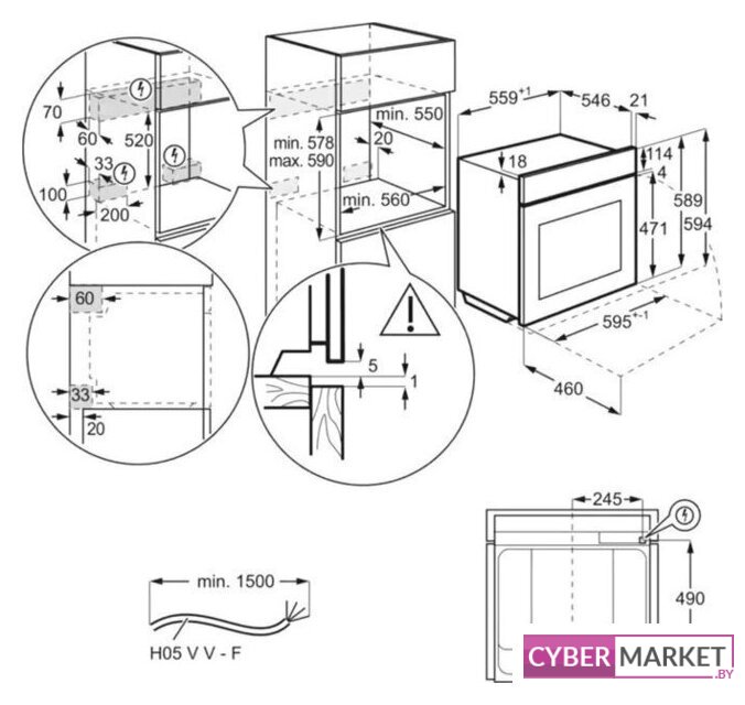 электрический с конвекцией, объем 60 л, 10 режимов, очистка паровая, 3 стекла в дверце, направляющие проволочные