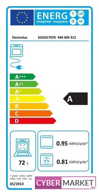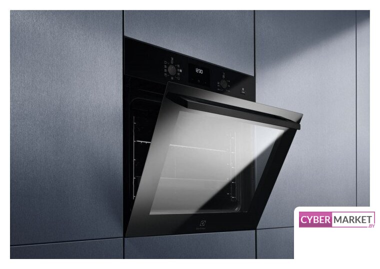 электрический с конвекцией, объем 72 л, утапливаемые переключатели, 9 режимов, очистка пиролитическая, 3 стекла в дверце, направляющие проволочные + телескопические (1 уровень)