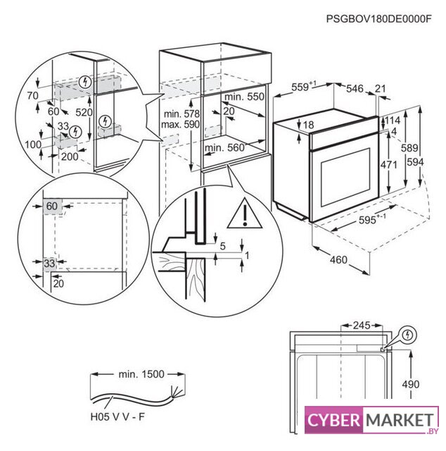 электрический с конвекцией, объем 72 л, 16 режимов, автопрограммы, очистка пиролитическая, направляющие проволочные + телескопические (1 уровень), термощуп