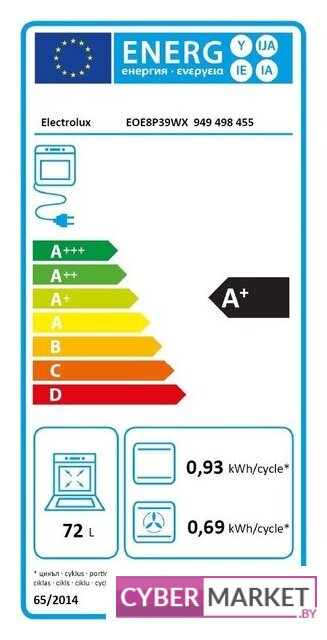 электрический с конвекцией, объем 101 л, 12 режимов, очистка каталитическая, проволочные направляющие, телескопические направляющие, энергопотребление A