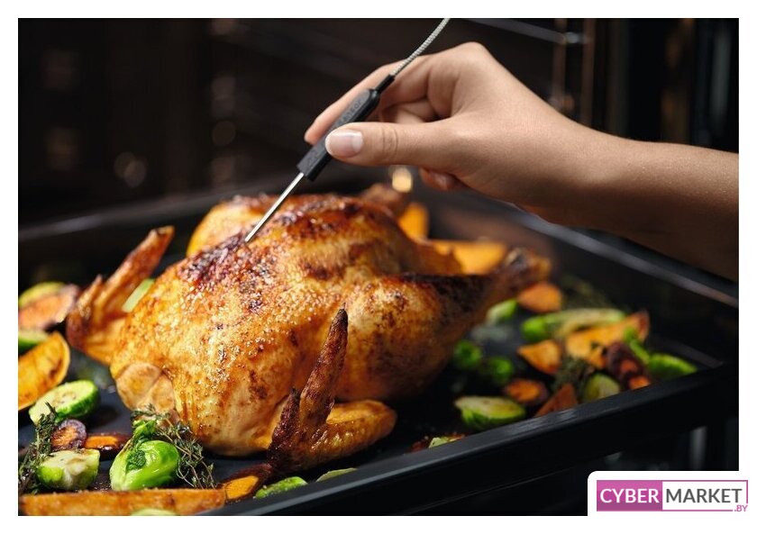 электрический с конвекцией, объем 71 л, 11 режимов, автопрограммы, очистка пиролитическая, 4 стекла в дверце, направляющие проволочные + телескопические (1 уровень), термощуп