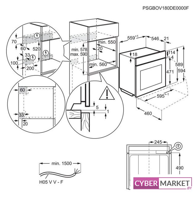 электрический с конвекцией, приготовление на пару, объем 71 л, 8 режимов, автопрограммы, очистка пиролитическая + паровая, направляющие проволочные + телескопические (1 уровень)