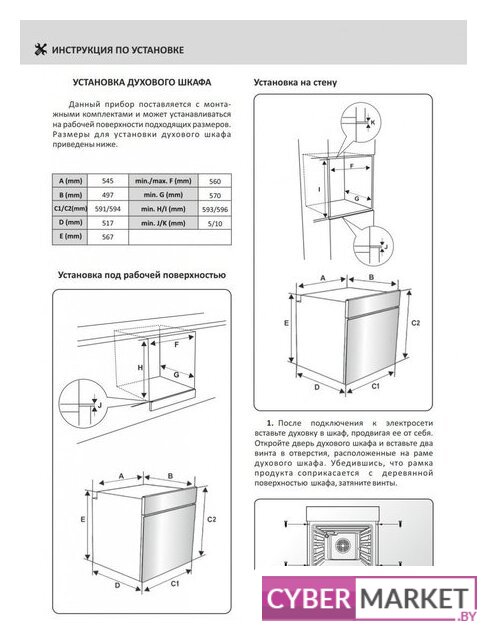 электрический с конвекцией, объем 62 л, 8 режимов, очистка ручная, энергопотребление A