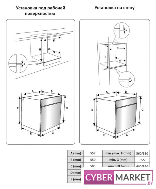 электрический с конвекцией, объем 58 л, 6 режимов, очистка ручная, проволочные направляющие, энергопотребление A