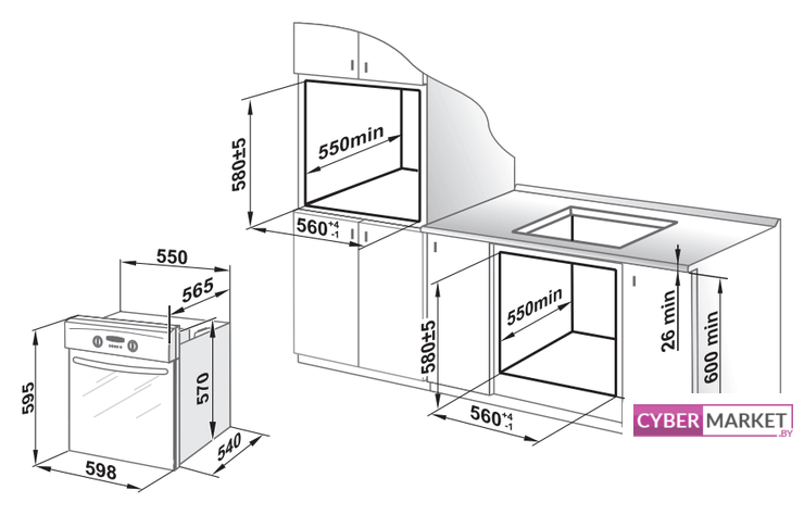 электрический с конвекцией, объем 50 л, утапливаемые переключатели, 6 режимов, 3 стекла в дверце, направляющие проволочные
