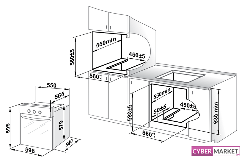газовый статический, объем 52 л, 3 режима, очистка ручная, 2 стекла в дверце, направляющие проволочные + телескопические (1 уровень)