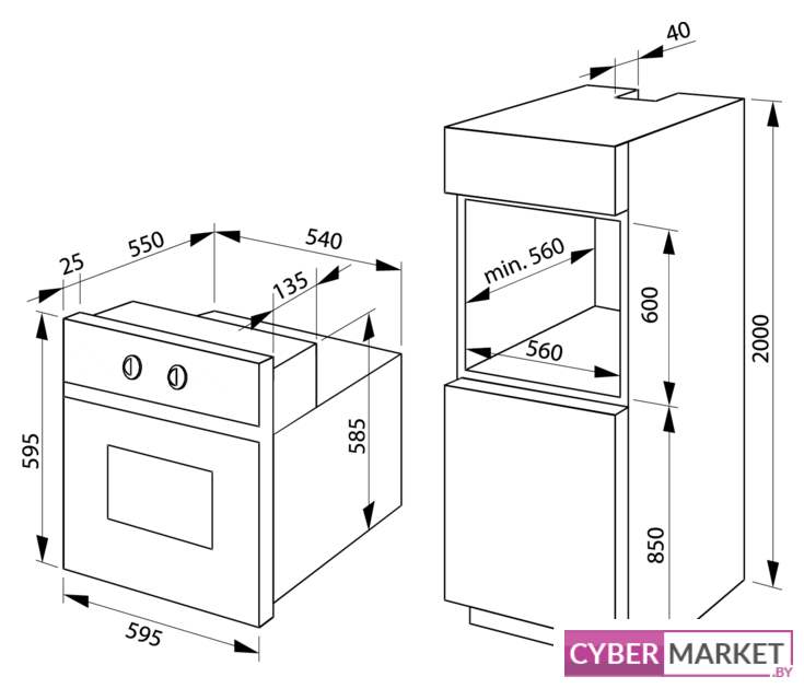 электрический с конвекцией, объем 66 л, 8 режимов, очистка ручная, энергопотребление A-20%