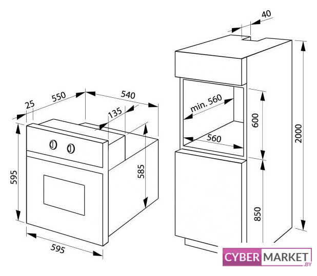 электрический с конвекцией, объем 78 л, утапливаемые переключатели, 6 режимов, очистка ручная, 3 стекла в дверце, направляющие проволочные (1 уровень)