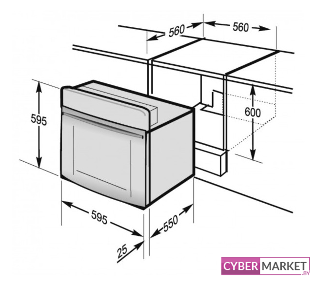 электрический с конвекцией, объем 60 л, утапливаемые переключатели, 10 режимов, очистка ручная, 3 стекла в дверце, направляющие проволочные